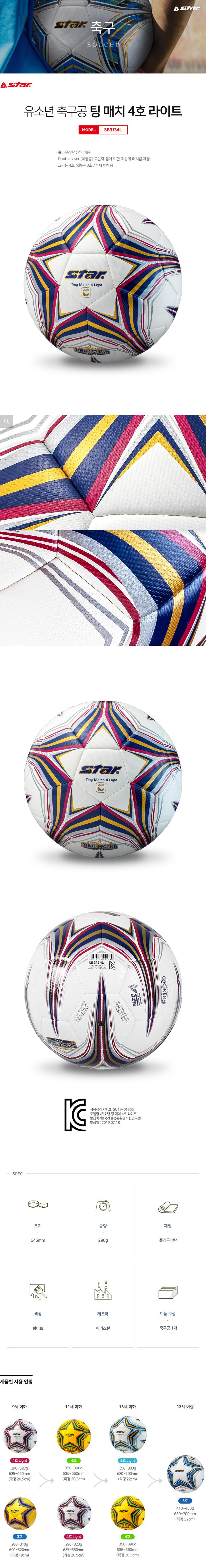 스타스포츠 유소년축구공 팅 매치 4호 라이트 SB3134L
